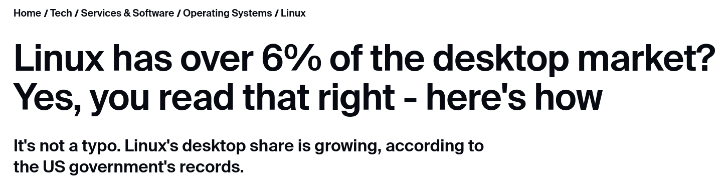 ZDNet even ran an article claiming that Linux had 6% market share according to US government records, which might surprise some of you. Though obviously biased in favor of the US, we do have the analytics from the government's AdSense account, which is yet another data point.